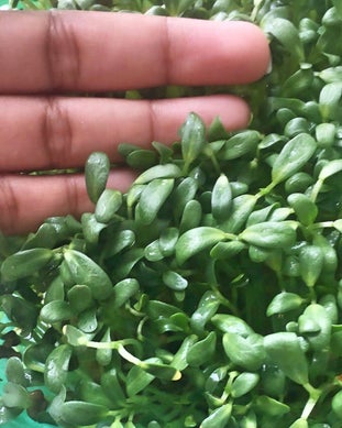 1) Harvest the required amount of fresh fenugreek microgreens by chopping above the mesh or can be pulled out too.