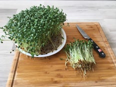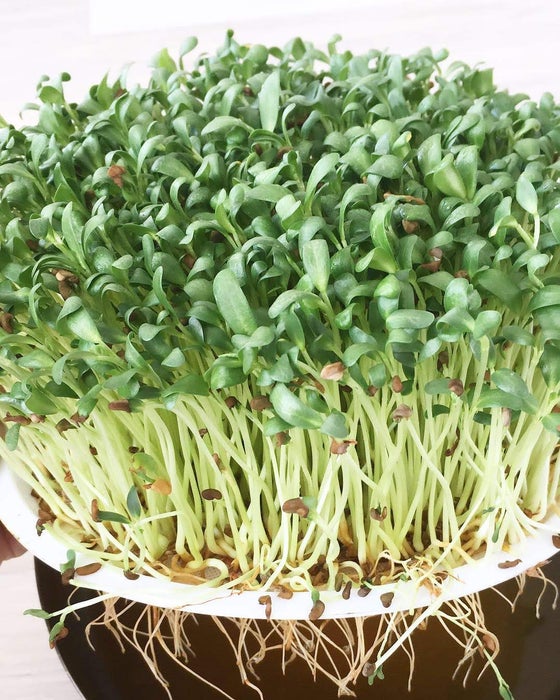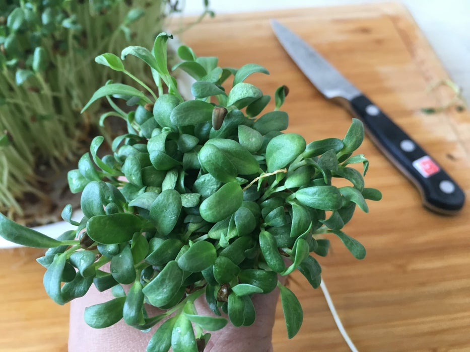 6) By 10 to 12 days, the fresh mustard microgreens should be ready for harvest. It is very clean to harvest and tastes lovely.