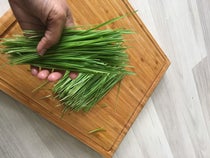 1) Harvest the required amount of fresh wheatgrass microgreens and grind it in a blender with some water.